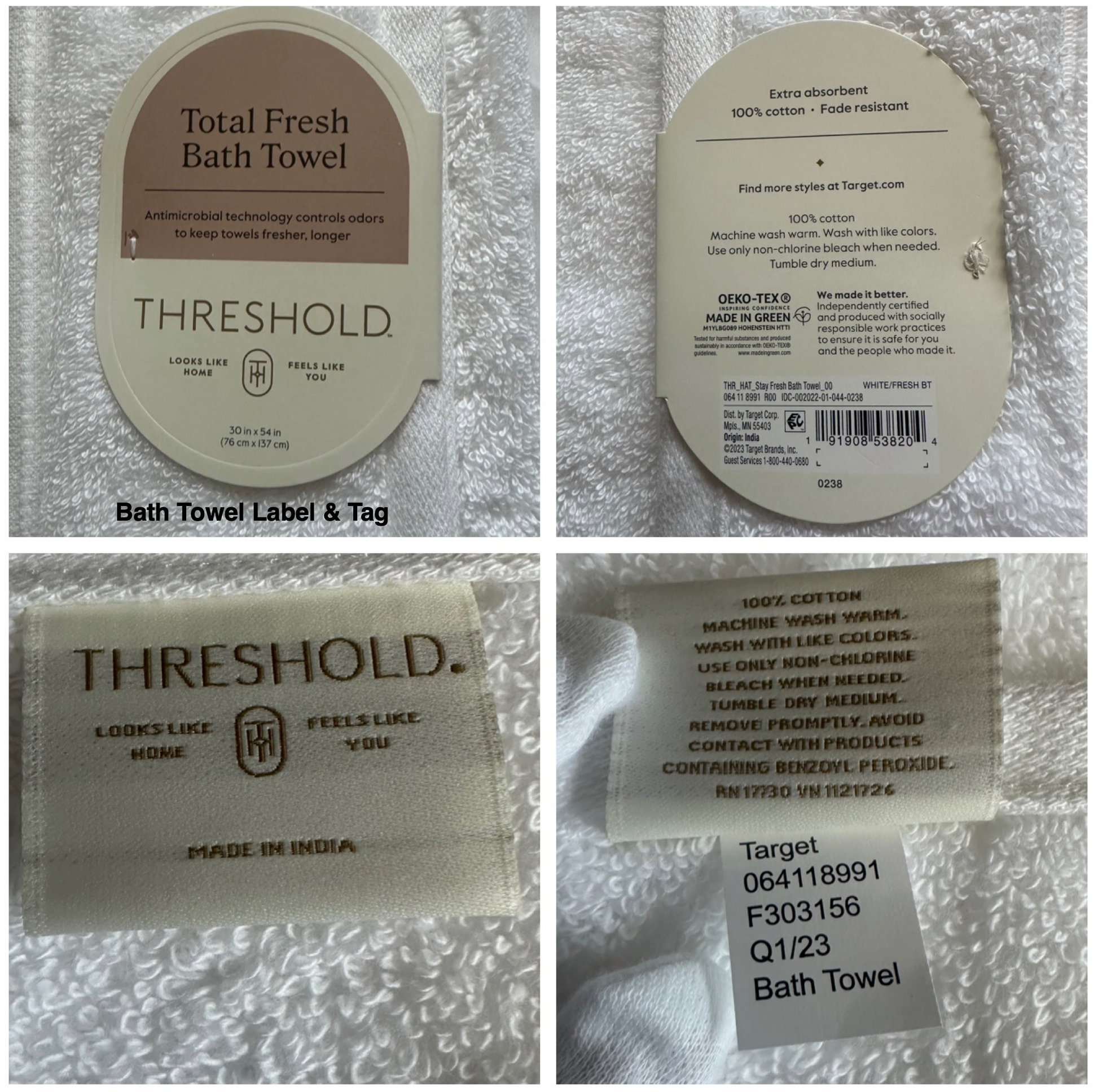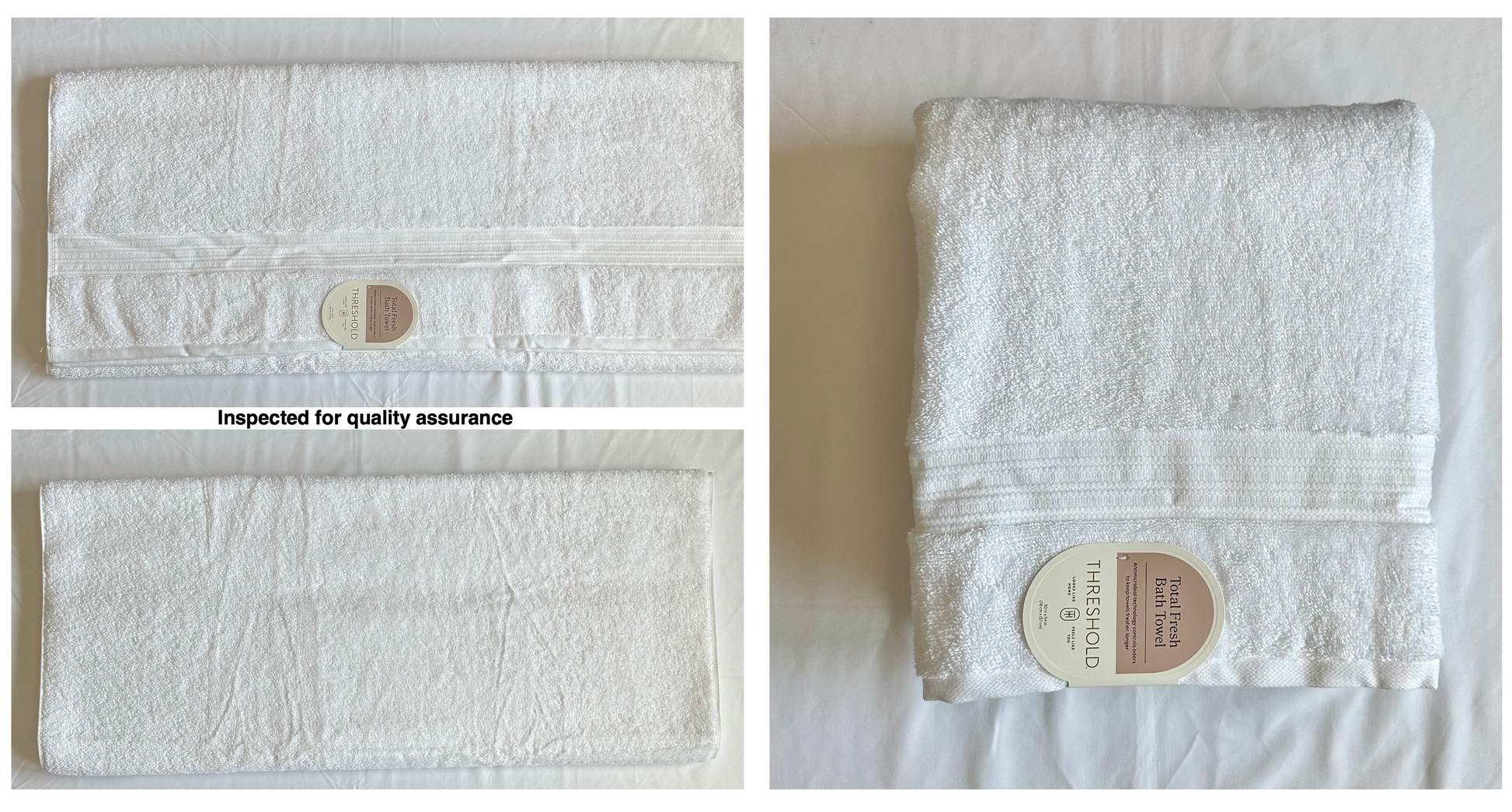 Total Fresh Bath Towel-Threshold Size: 30 inches x 54 inches | Color: White Material: 100% Cotton | Wash before Using| Machine wash warm with like colors. Use only non-chlorine bleach when needed. Tumble dry medium setting | $7.00