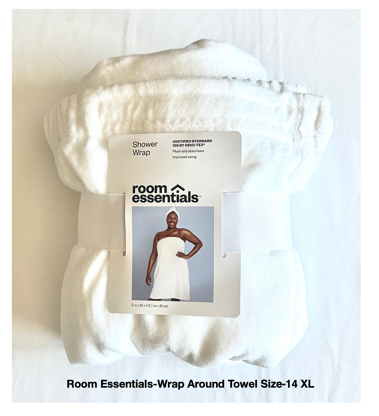 Room Essentials-Wrap Around Towel Size: 14-XL (31 inches x 39 inches) | Color: White | Material: 100% Cotton | $10.00