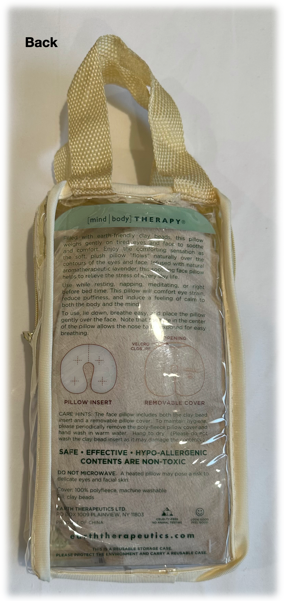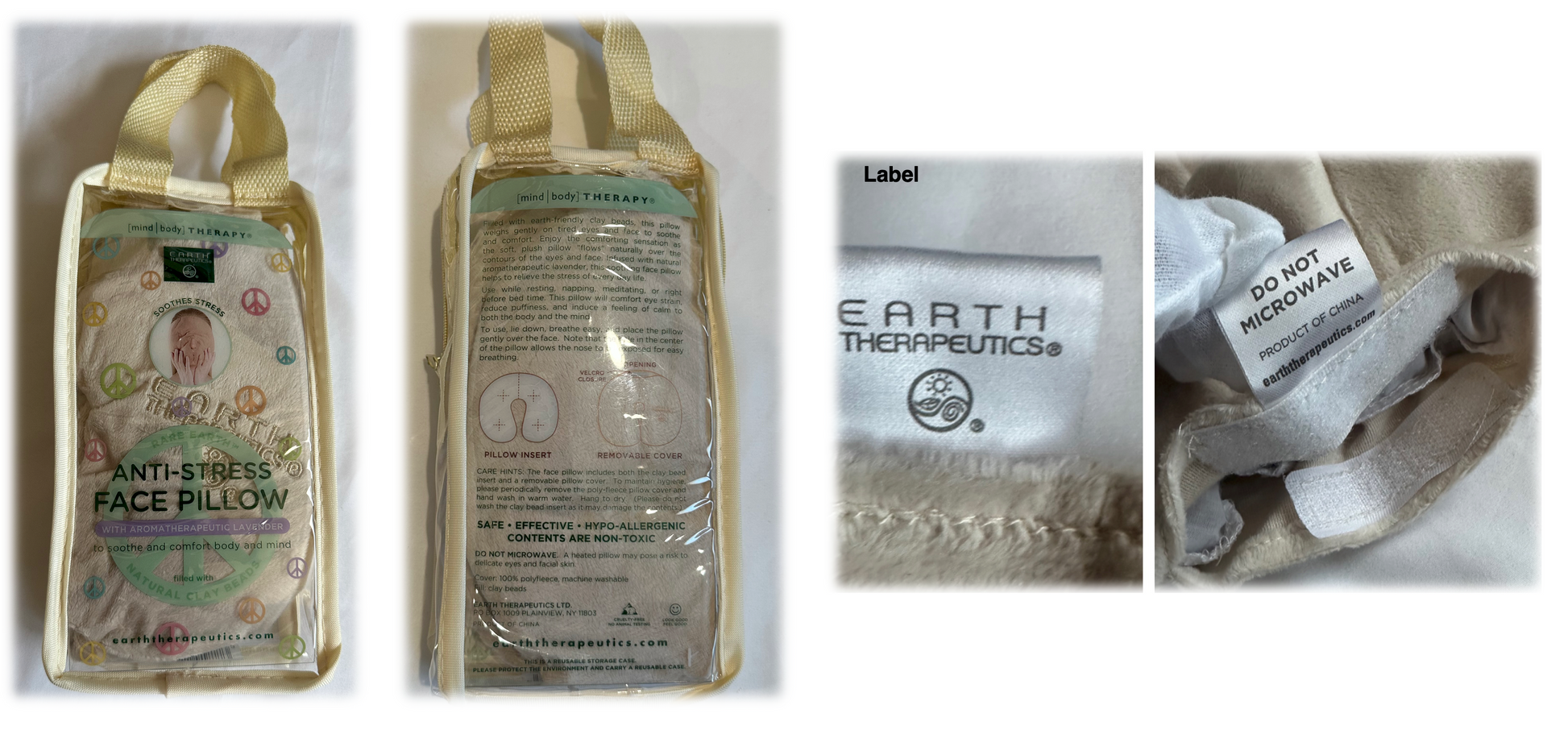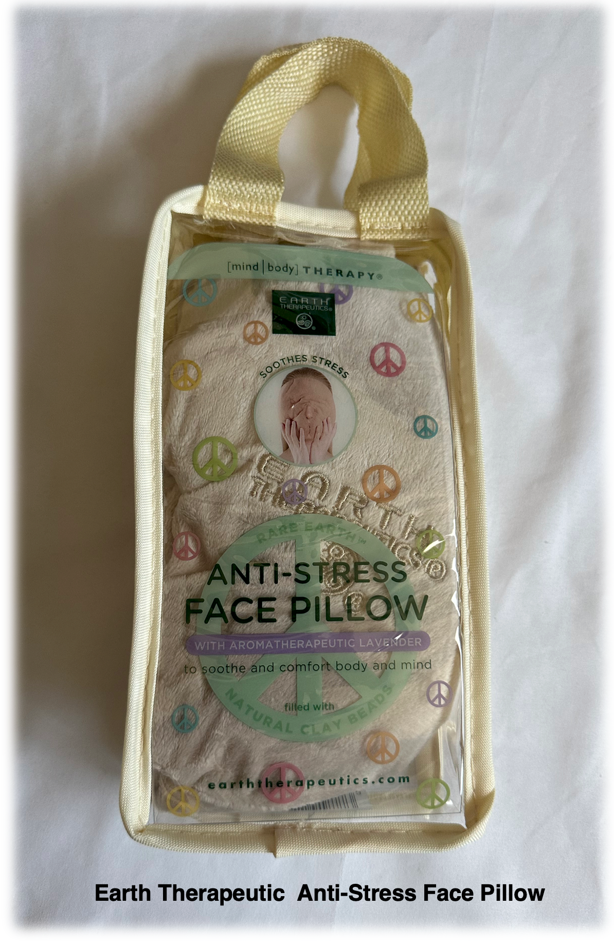Earth Therapeutic Anti-Stress Face Pillow Color: Beige | Material: 100% Polyester | Only the Cover wrap is machine washable | $14.99