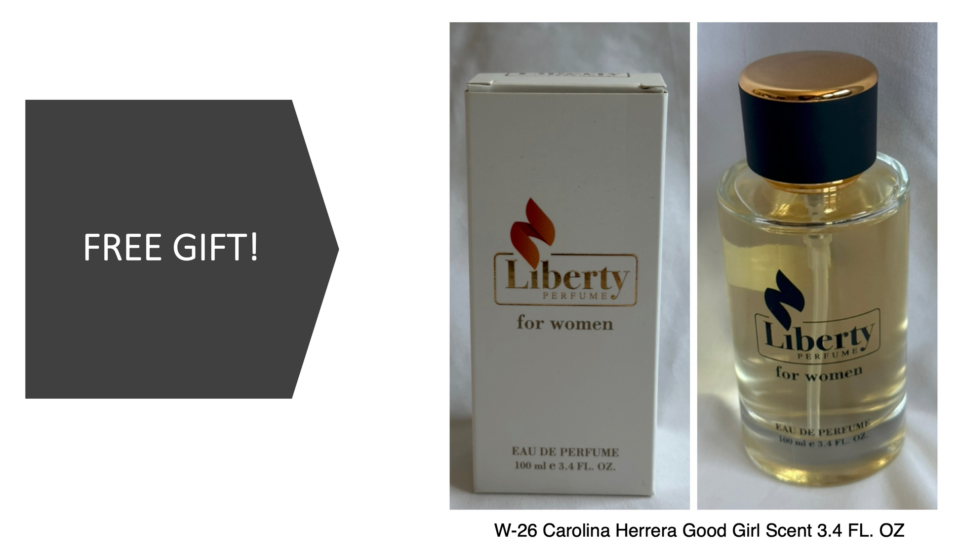 Free Gift! – Liberty Perfume W-26 Good Girl Scent Size: 100ml| Scent: Inspired by Carolina Herrera Good Girl Fragrance | This Perfume is 100% Vegan and Cruelty Free | $79.99
