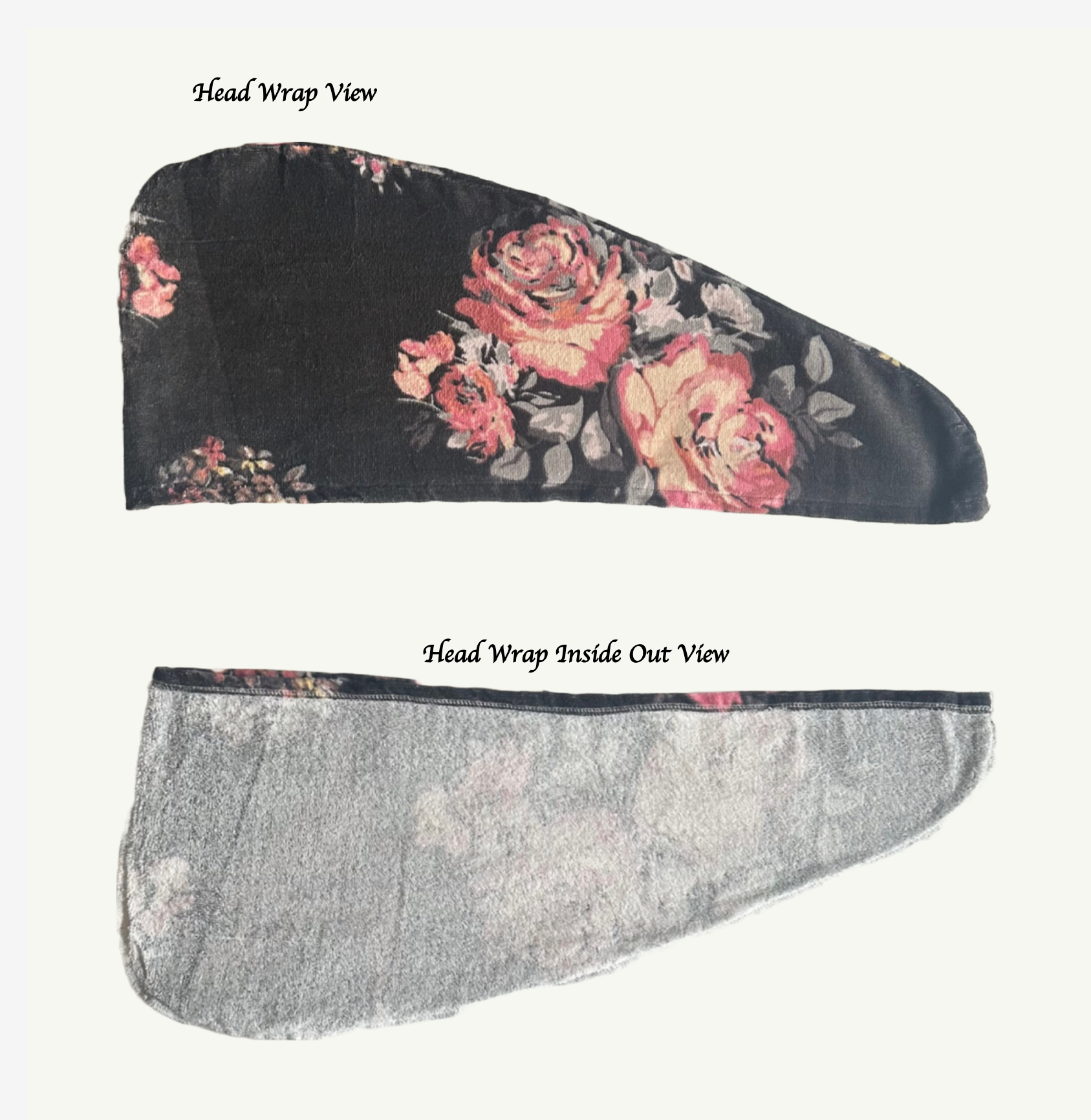 2. The Hair Wrap with one size fits most (10 in x 25 in) Size: Med/Large | Color: Black Floral | Material: 100% Cotton | Wash before Using| Machine wash with warm like colors. Only non-chlorine bleach when needed. Tumble dry low