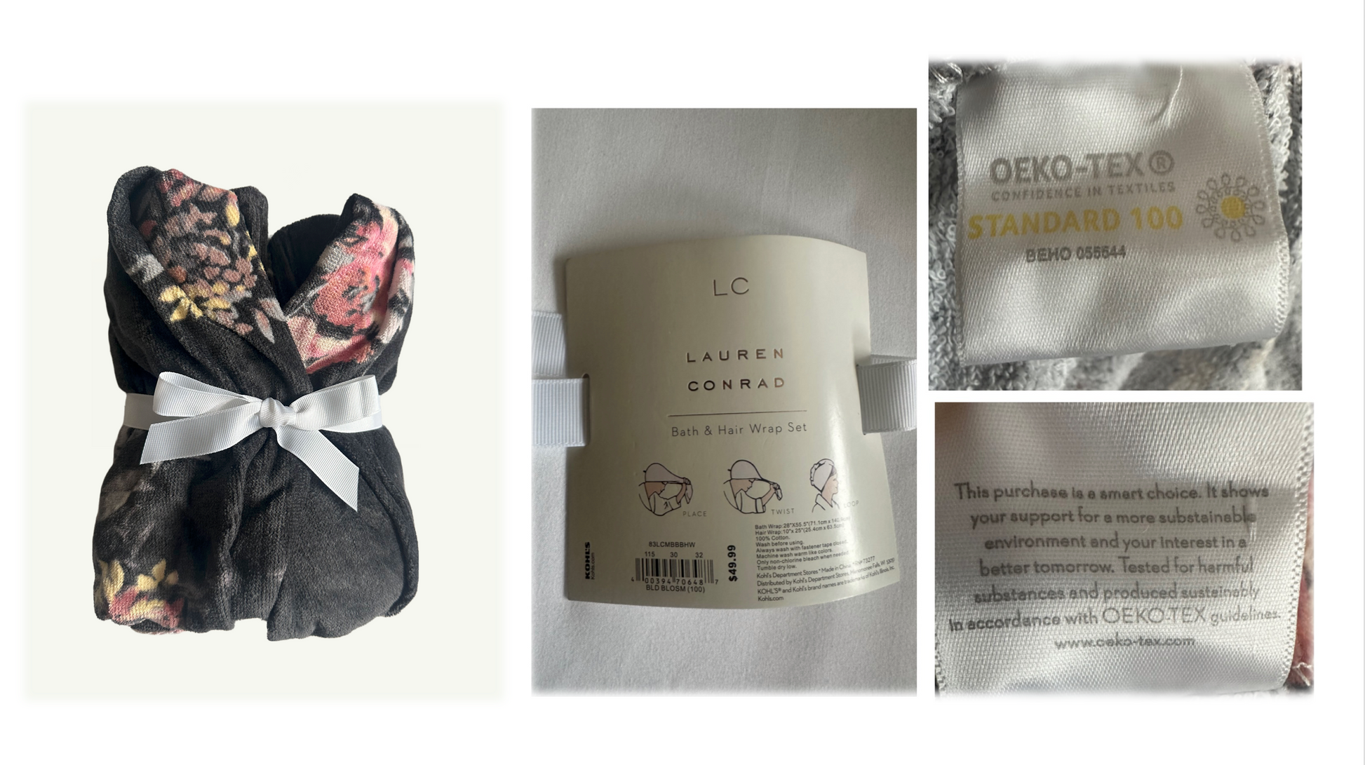 1. The Bath Wrap has an adjustable loop closure with one size fits most (28 in x 55.5 in x 35 in) Size: 12-14 (Med/Large) | Color: Black Floral Material: 100% Cotton | Wash before Using| Machine wash with warm like colors. Only non-chlorine bleach when needed. Tumble dry low | SKU#400394706487 $49.99