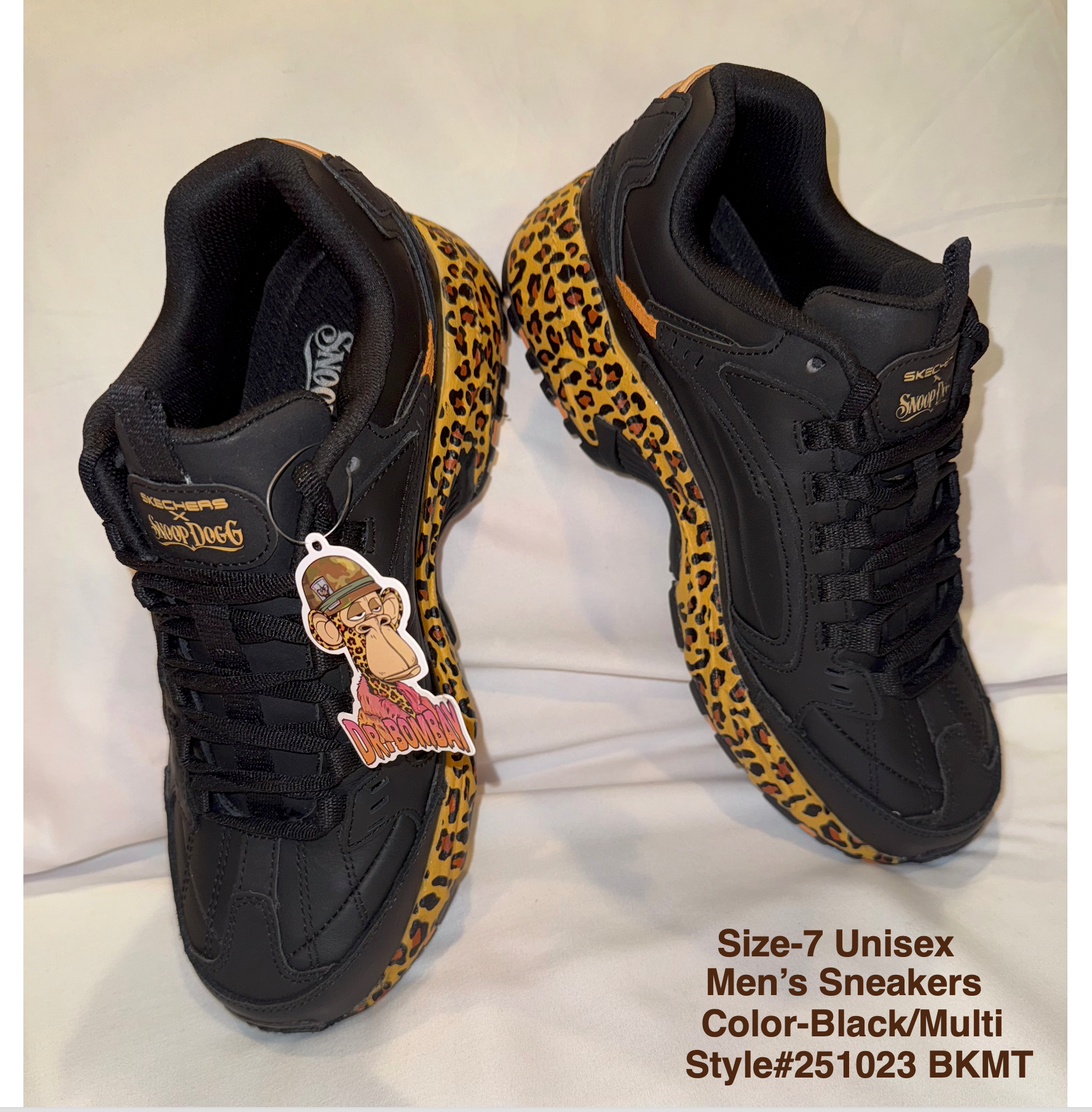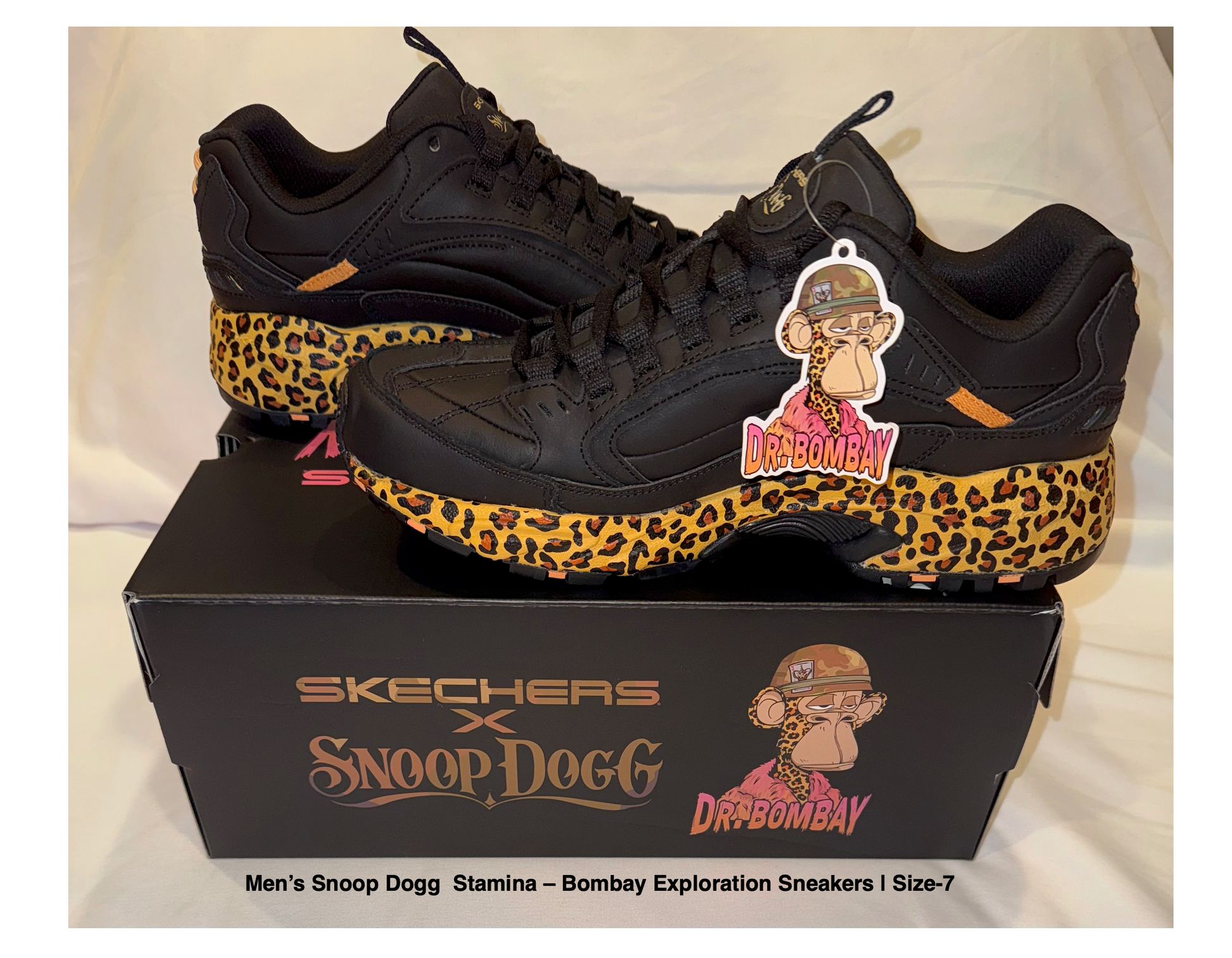 Specification: Condition: Brand New with box | Brand: Skechers X Snoop Dogg | US Shoe Size: 7 | Price: $100.00 | Fit/Width: Unisex | Model: 251023 BKMT | Heel Height: 1 ¾ inches | MPN/Item#: 251023 BKMT | Shoe Width: Medium Width | Product Line: Stamina ’91-Bombay | Color: Black/Multi | UPC: 197627175331 | Pattern: Leopard Print Contrast Midsole | Insole material: Skechers Memory Foam | Style/Type: Athletic/Streetwear Sneaker | Outsole Material: Rubber (Dura-Grip) | Toe Shape: Lace Up Front | Closure: Round Toe | Upper Material: Smooth Leather | Lining Material: Textile | Origin: Imported-Made in Vietnam | Accent: Leopard Print, ”S” Logo | Character: Dr. Bombay (Snoop Dogg NFT) | Theme: Hip Hop, Urban, NFT, Street Style | Shoe Shaft Style: Low Top | Season: All Season